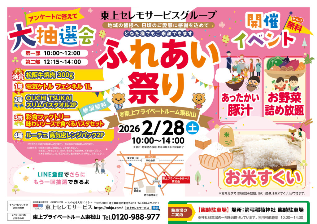 2026年2月28日、土曜日、「東上プライベートルーム東松山」にて、初の「ふれあい祭り」を開催いたします!